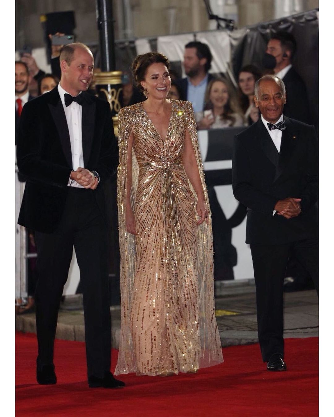 غیر ملکی میڈیا رپورٹس کے مطابق کیٹ مڈلٹن کے فلم ’جیمز بانڈ ‘ کے پریمیئر میں گولڈن رنگ کے بھڑکیلے لباس میں شرکت کرنا ایک موضوع بحث بنا ہوا ہے۔