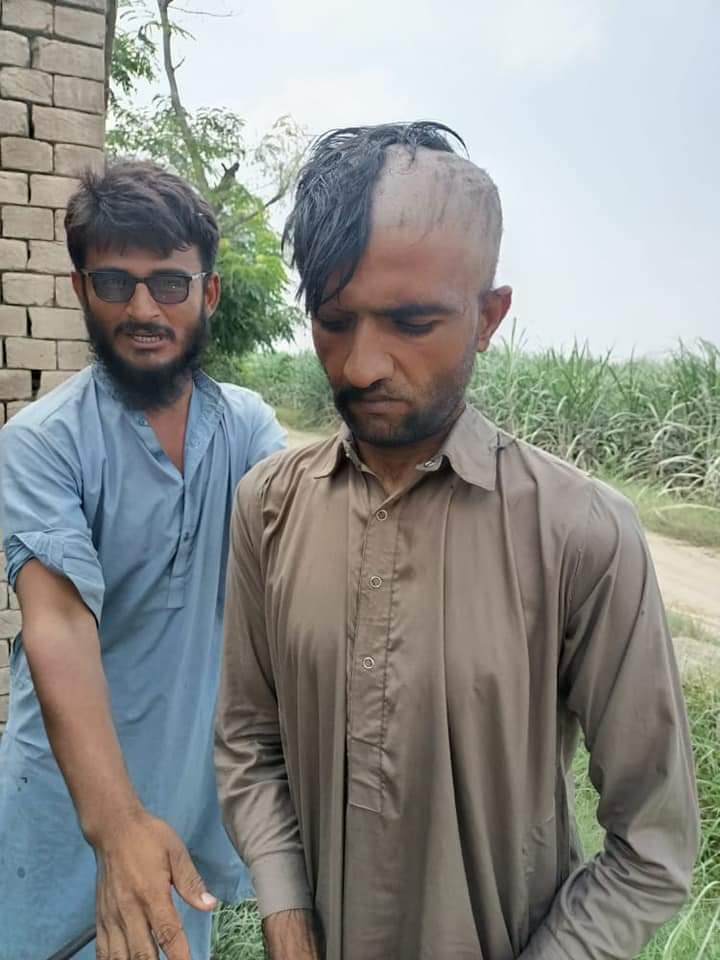بستی علی والا موضع کوٹلہ سلطان شاہ کے رہائشی نوجوانوں الیاس ولد اللہ بچایا درکھان , آفتاب ولد اللہ بچایا درکھان , عنصر ولد کلیم اللہ درکھان , شکیل ولد عبداللہ درکھان , صدیق ولد عبداللہ درکھان نے مقامی زمیندار کی پشت پناہی پر بلیڈ کی مدد سے مونچھیں , بھنویں اور سر کے بال کاٹ ڈالے
