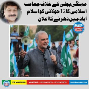 جماعت اسلامی نے مہنگی بجلی کے خلاف 12جولائی کو اسلام آباد میں دھرنا دینے کا اعلان کردیا ہے۔