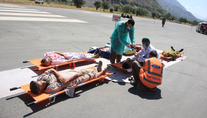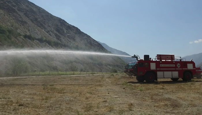 چترال ہوائی اڈے پر فرضی طیارہ حادثے پر متعلقہ اداروں نے مکمل پیمانے پر ہنگامی صورتحال کی مشق کی۔